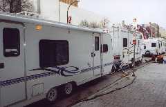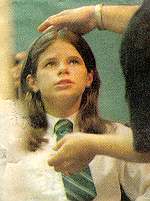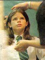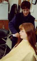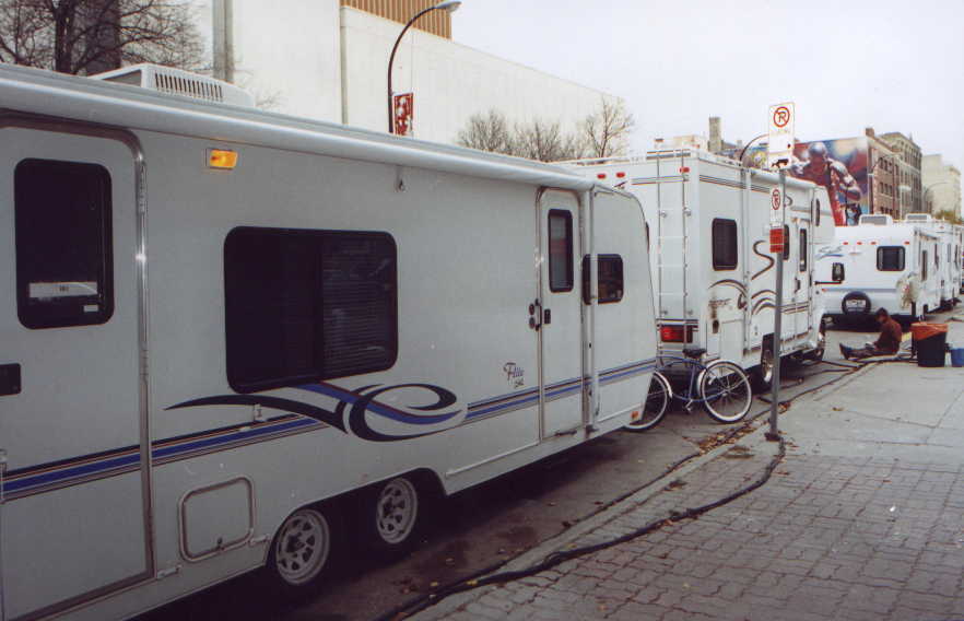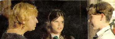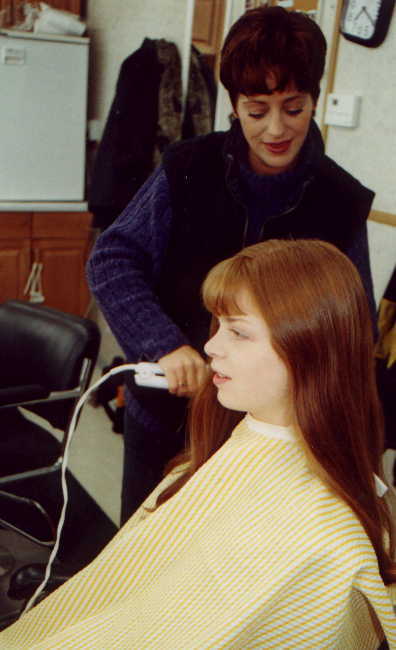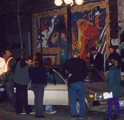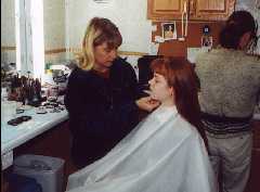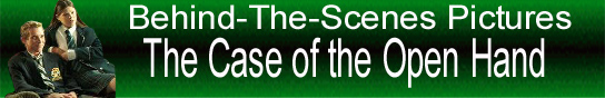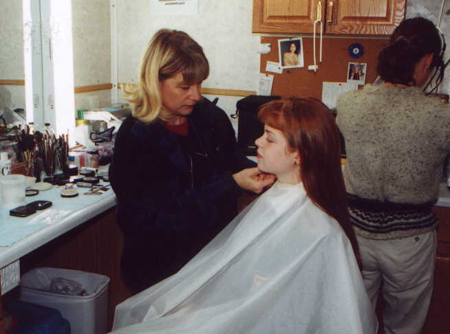 The picture to the left is Meredith getting her hair done, and the one on the right is Anne Wheeler (one of the directors) directing Meredith and John in a scene from The Case of the Burning Building.