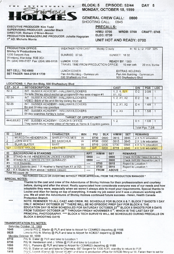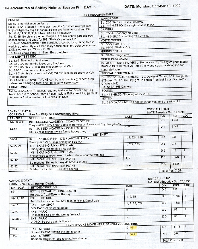 Episode Chronologyby R.W. Watkins Shirley Holmes Chronology (PDF) A long time supporter of the site, R.W has compiled a comprehensive timeline of the four seasons, independent of the official air date. In depth, and fascinating, it is a must read. R W Watkins is a Canadian writer. Read more, and purchase books, from his Amazon Author Page |